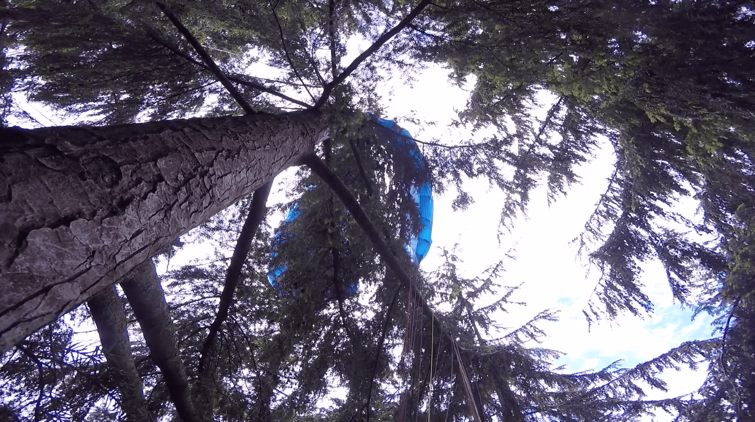 So, there I was, sawing my paraglider lines with a bike lock key. I was eighty feet up an evergreen tree, with a brake line tied to the tree for back up. Fortunately, I had cell service and called a friend for help, who was quickly in route with a rope. Within a couple hours, my [now] recycled paraglider tag line touched down, the rope came up, I rapped down, and we were out of there.